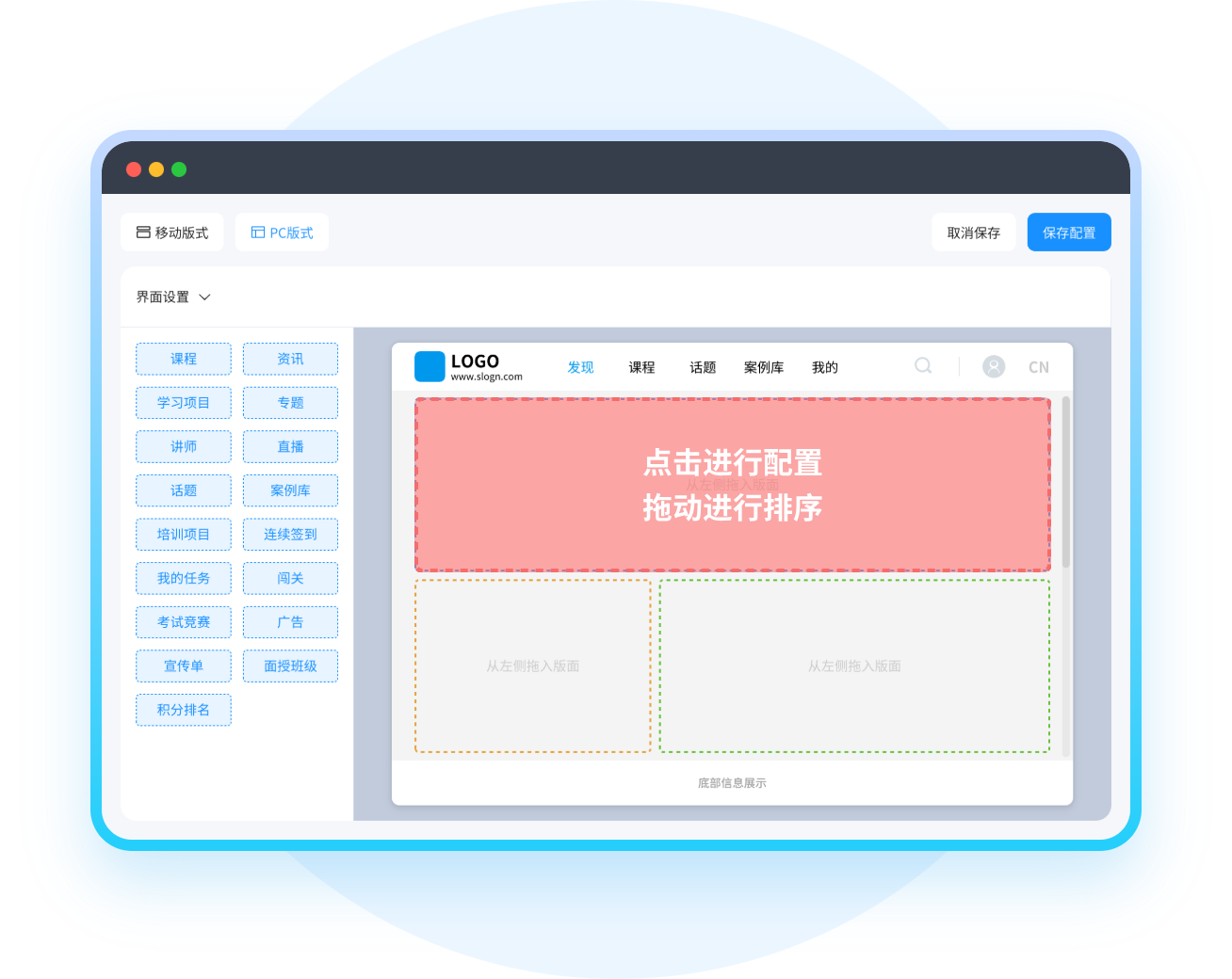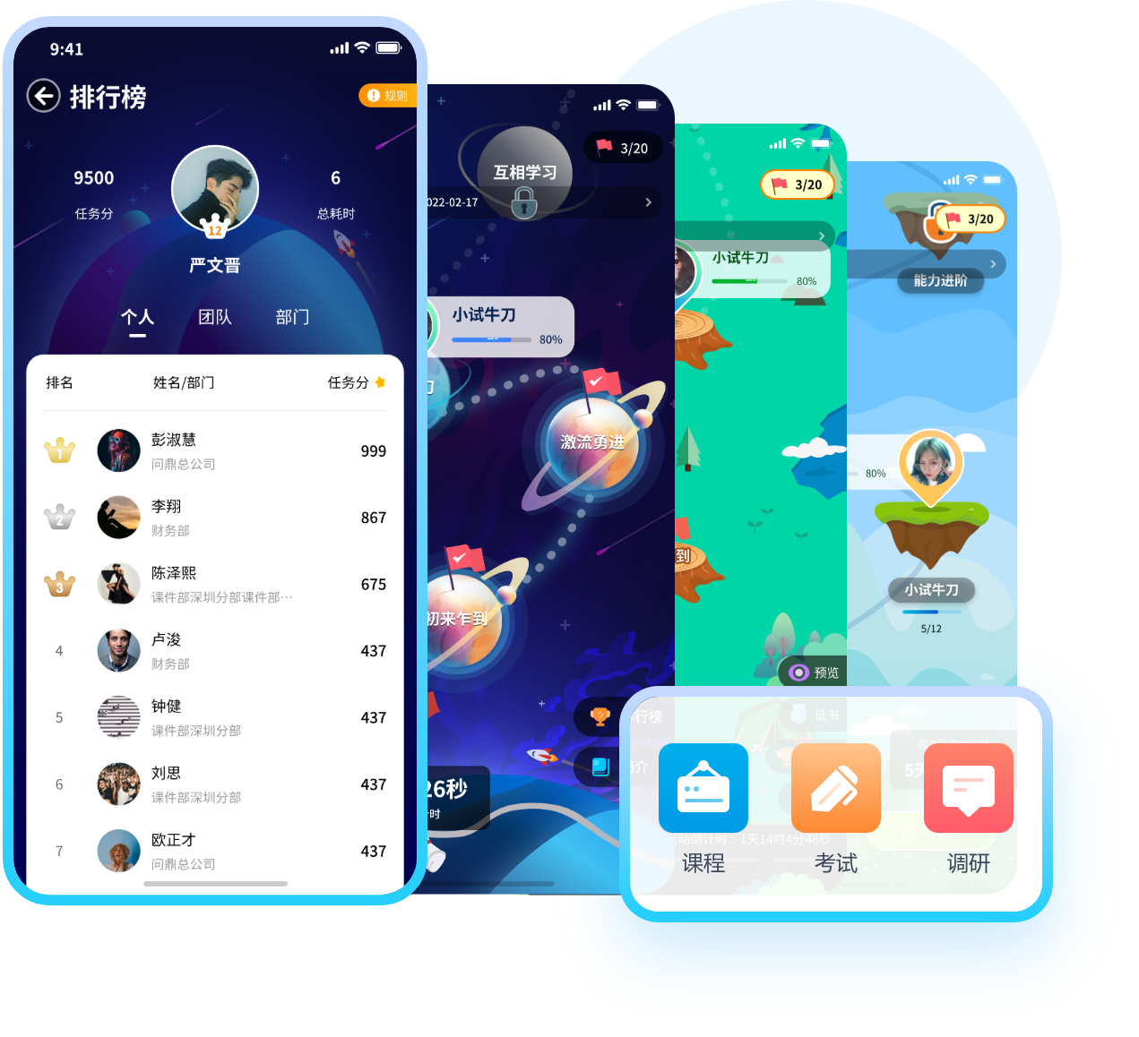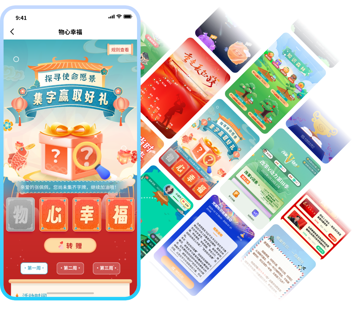 根据活动主题进行个性化UI设计及界面灵活配置,营造轻松学习氛围,打造沉浸式学习体验,调动学员学习积极性。